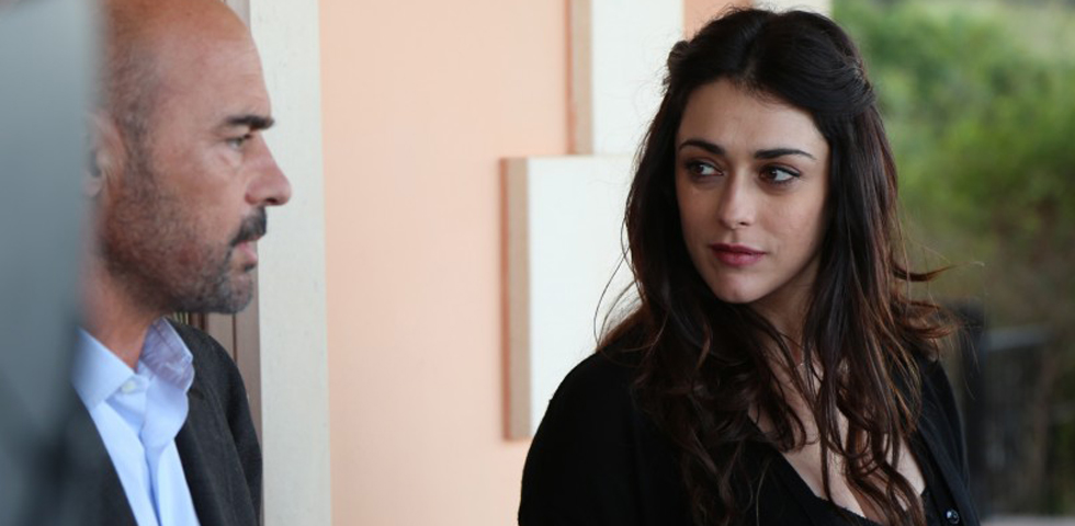 Fotograma de la adaptación de la novela. Montalbano (Luca Zingaretti) junto a Giovanna Barletta (Valentina Lodovini)